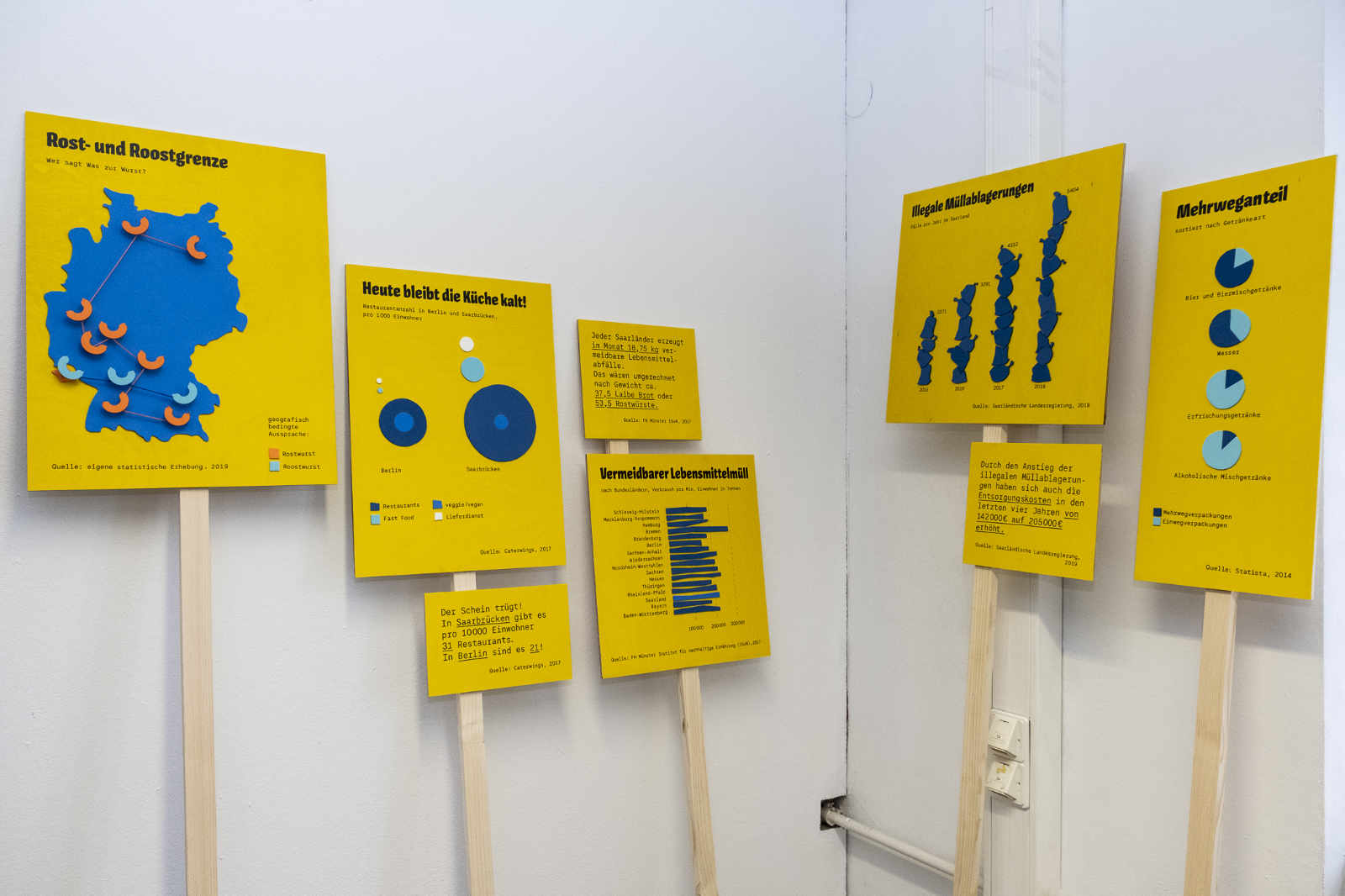 »Das Saarland in Zahlen« ist als Atelierprojekt im Wintersemester 2019/20 im Studiengang Kommunikationsdesign der Hochschule der Bildenden Künste Saar (HBKsaar) entstanden, betreut von Prof. Indra Kupferschmid.